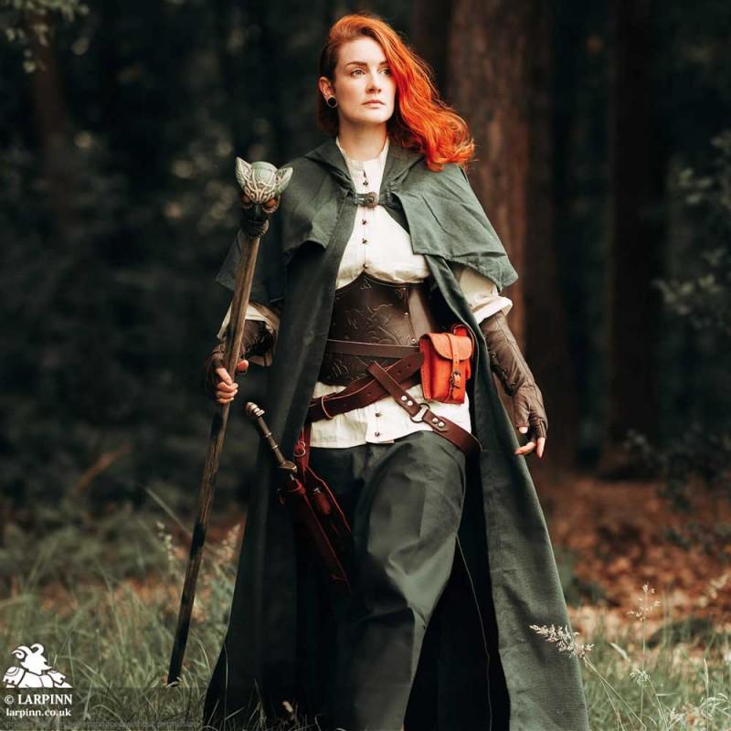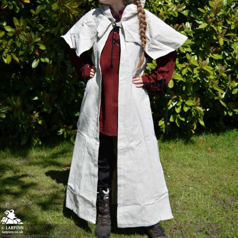 The Abraxas Duster is a overcoat to be worn as an additional layer to add a new style or texture to existing costume. The beauty of the Abraxas Duster it can really stylise a whole range of base layers and pull a LARP, theater or cosplay costume together with the simple addition of just one item. This jacket can also add added protection from the cold and wet weather.