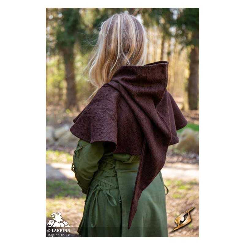 Epic Armoury’s Hood Adventurer is a hood with a short mantle and long hood tail. The mantle covers the shoulders, keeping the upper chest covered, while the roomy hood can be pulled down to cover part of the face. Made of a rougher fabric than our Basic Hood, this hood provides protection from the elements without being too warm in potential heat.