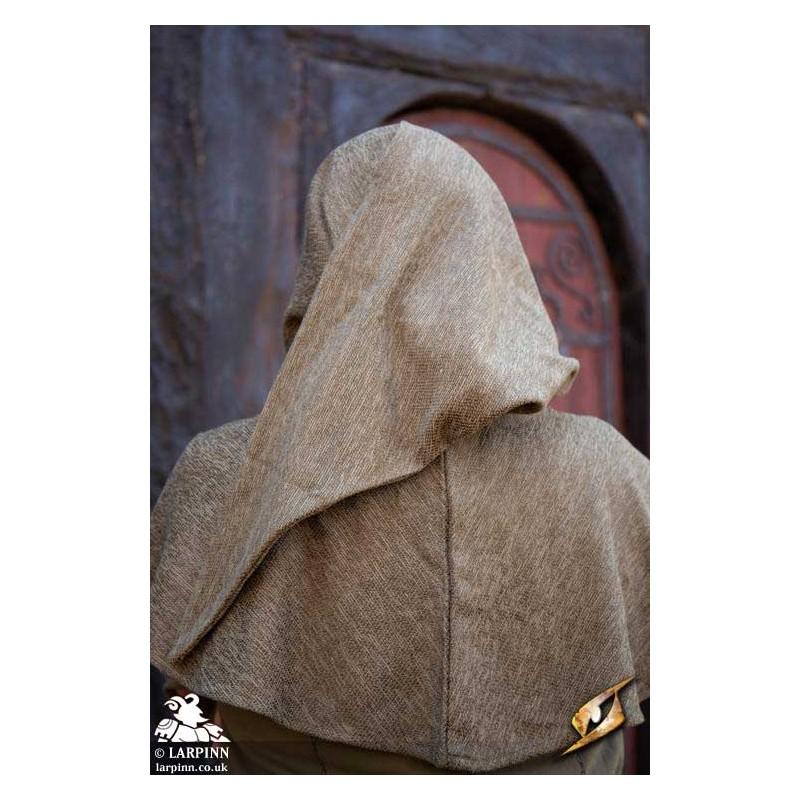 Epic Armoury’s Hood Adventurer is a hood with a short mantle and long hood tail. The mantle covers the shoulders, keeping the upper chest covered, while the roomy hood can be pulled down to cover part of the face. Made of a rougher fabric than our Basic Hood, this hood provides protection from the elements without being too warm in potential heat.