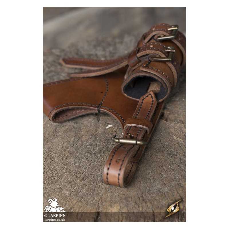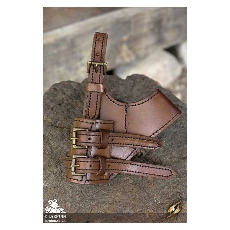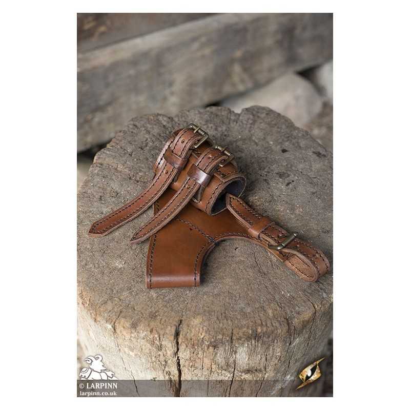 The Adventurer Swordholder is a simple way to carry your weapon on your waist belt while adding detail and authenticity to your overall outfit. Using full-grain leather with a vegetable-tanned finish, this swordholder is versatile and attractive. Each strap is secured using a cast-iron buckle, adjusting to the size of the weapon or scabbard perfect for your costume.