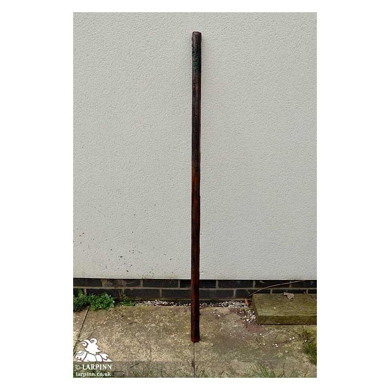 The Alaie Staff is a hand-crafted LARP weapon made here at Larp Inn. The natural theme, with leaves adorning the end of the staff, is subtle enough for any character costume, but ideal for elves, druids and fey.