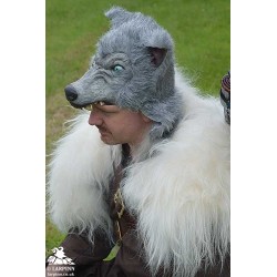 Our Grey Wolf Animal Hood is a great alternative to real fur trophies. This particular costume item is made from faux fur with a rubber/latex face. The hood is designed to sit on top of the head in a similar fashion to the mantles worn by Roman standard bearers. This adornment is also great for shaman, savages or wild characters. The top feature of having the mask on top of the head is that the face is not restricted or covered.