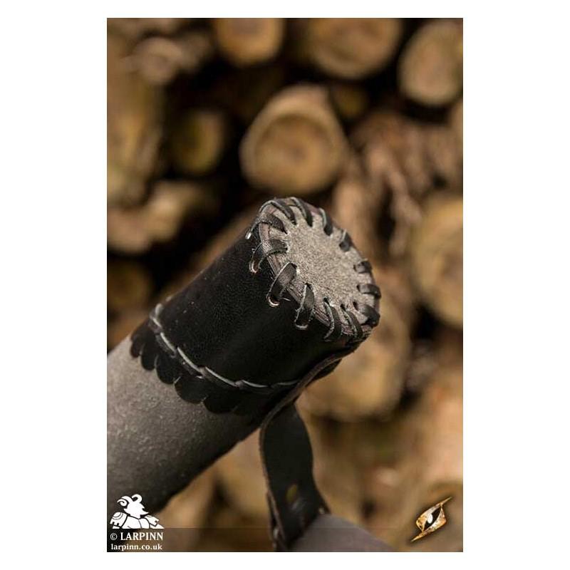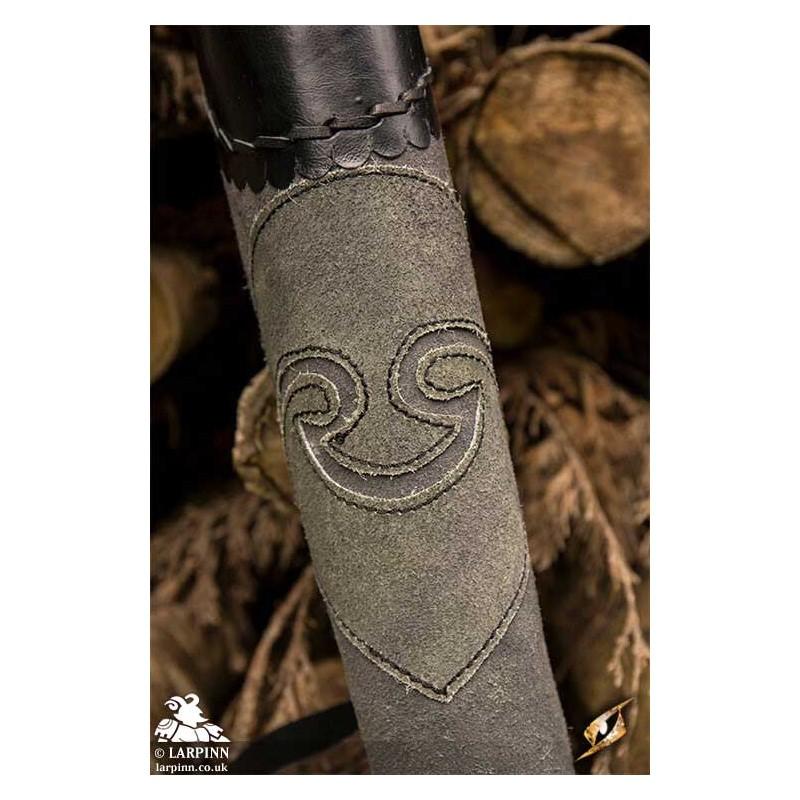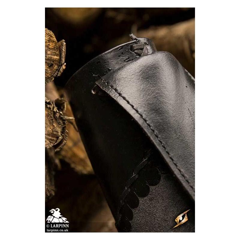 Epic Armoury’s Archer Quiver is a handsome tapered quiver designed to carry a supply of arrows with you on your adventures. It fits most LARP arrows and is made from chrome-tanned plated-leather with a soft split-leather exterior. Ornamental split-leather patches decorate this quiver to give it an embellished appearance. The circular bottom is stitched to the body with a similar flattened leather cord used along the top.