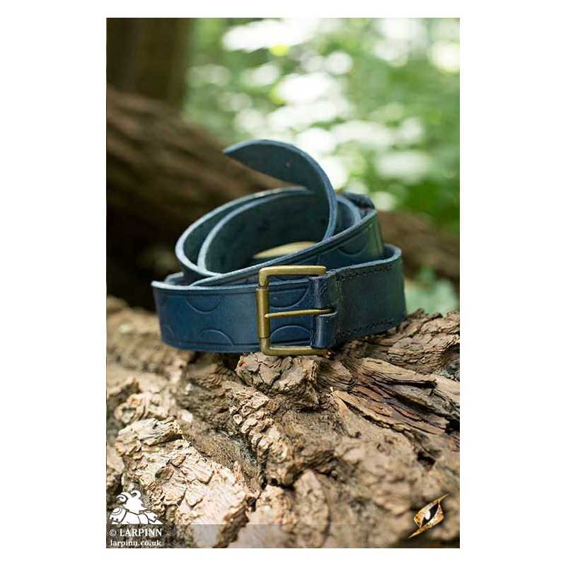 The Aruthian Belt is a long leather belt made from full-grain buffalo leather. Strong and durable, this belt is also stylish with its crescent moon tooling and stitched accents. With a 70 cm belt-tongue and 30 holes, adjust this belt to a large range of sizes to fit your unique body. Secure the belt using its rounded, brass belt buckle.