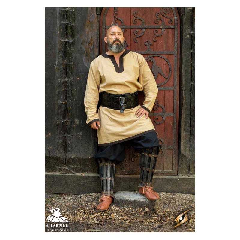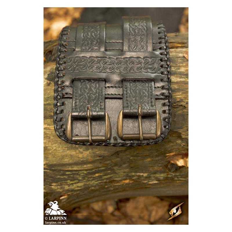 The Barbarian Belt is an impressive leather kidney belt embellished with beautiful designs and laced edges. The belt is made from two smaller, embossed leather belts slipped through a wide brace, providing a secure fit that will remain fixed over your costume. This design also allows you to attach heavy weapon holders and bags, supporting extra weight with ease. Aesthetically, the belt has rustic detailing with laced stitching that gives life to your costume.