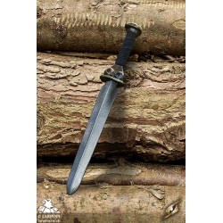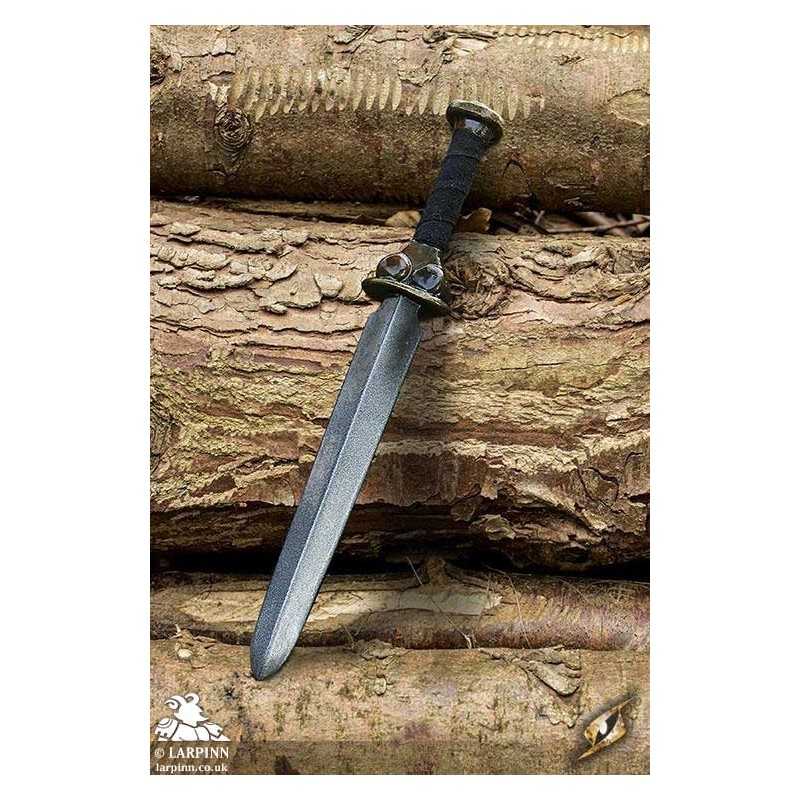 Epic Armoury's Bollocks Dagger is a two-edged dagger inspired by the versatile common folks’ knife of the Late Middle Ages. The 45 cm Bollocks Dagger has a narrow, 28 cm blade with a central ridge. The brass coloured oval crossguard with brown bollocks and brass pommel protect the 13 cm handle wrapped with black split leather.