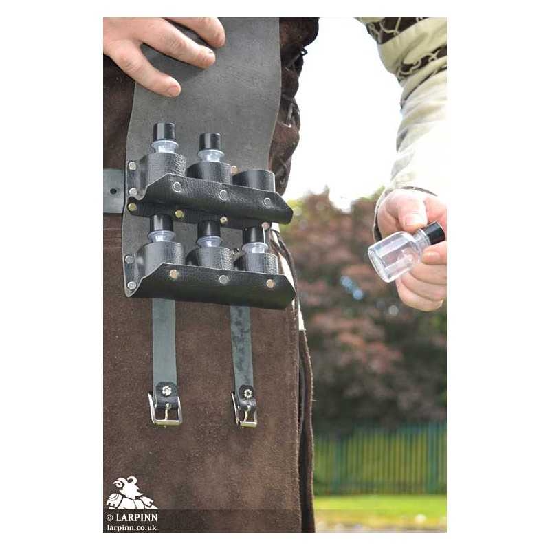 The Borr Healers Potion Pouches are a great way to keep potion bottles safe and accessible at all times. Each pouch includes x6 25ml plastic potion bottles with a screw on cap which fits snugly inside little leather pocket. This design is perfect for storing those particularly important elixirs of choice.