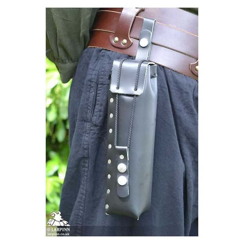 The Borr Pop Bottle Pouch is an absolute essential when attending a LARP. This pouch is the easiest and most economical way to ensure that you stay well hydrated throughout an event. This design allows you to drink from modern drinks bottles whilst the container is covered in a more authentic leather bag. The belt loop remains attached to your belt and you simply un-popper the bag to drink, then easily reattach to your belt.