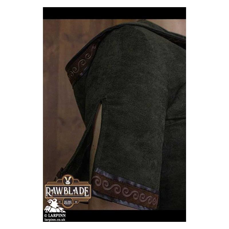 The Briannan Ranger Tunic is made from a soft suede, edged with a patterned fabric. Fitted with a hood, this item is great a staple for your costume or a layer above other kit.