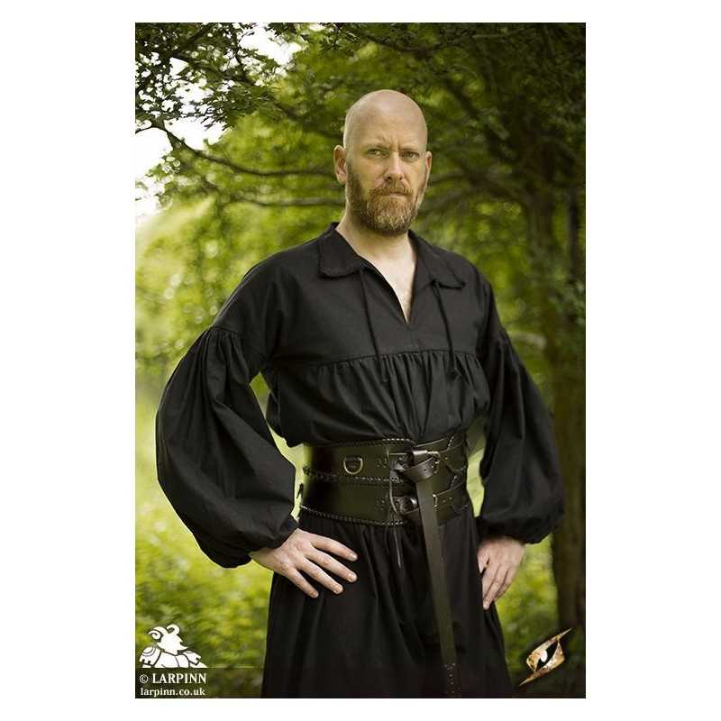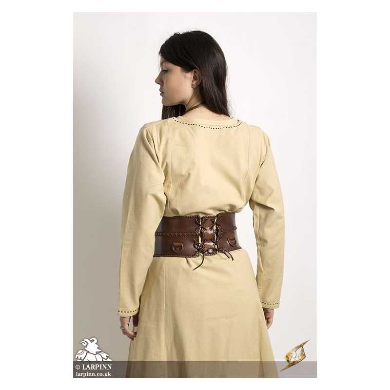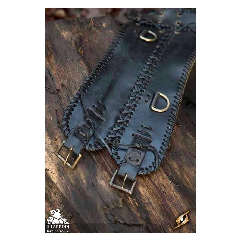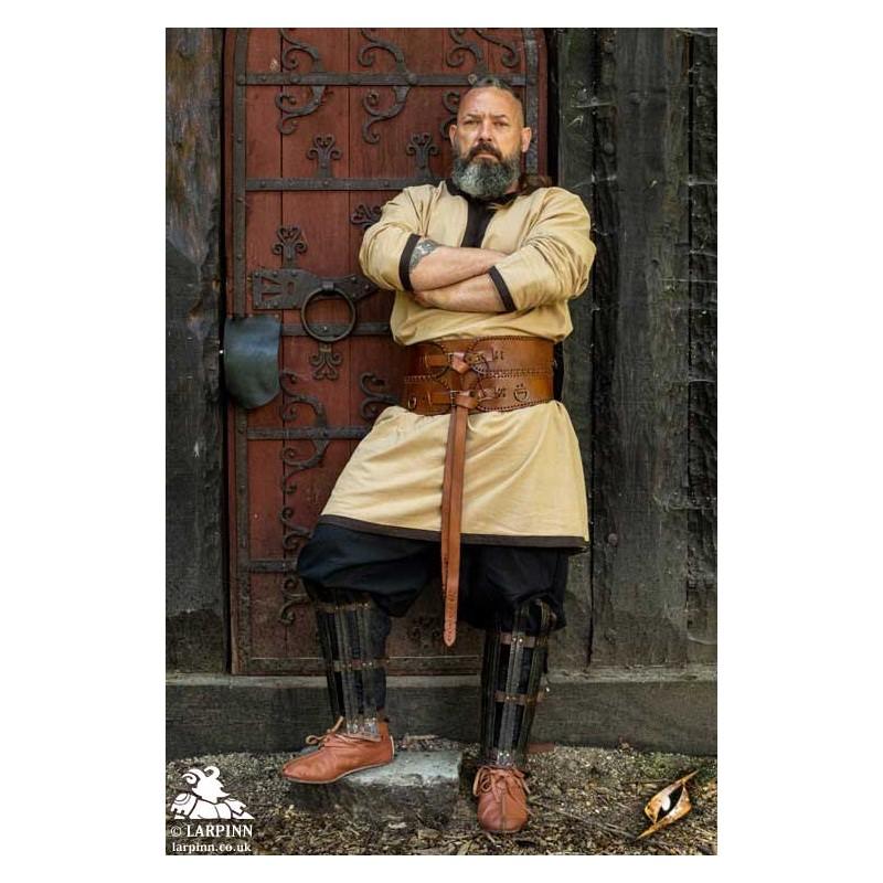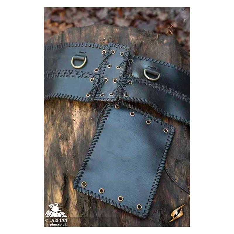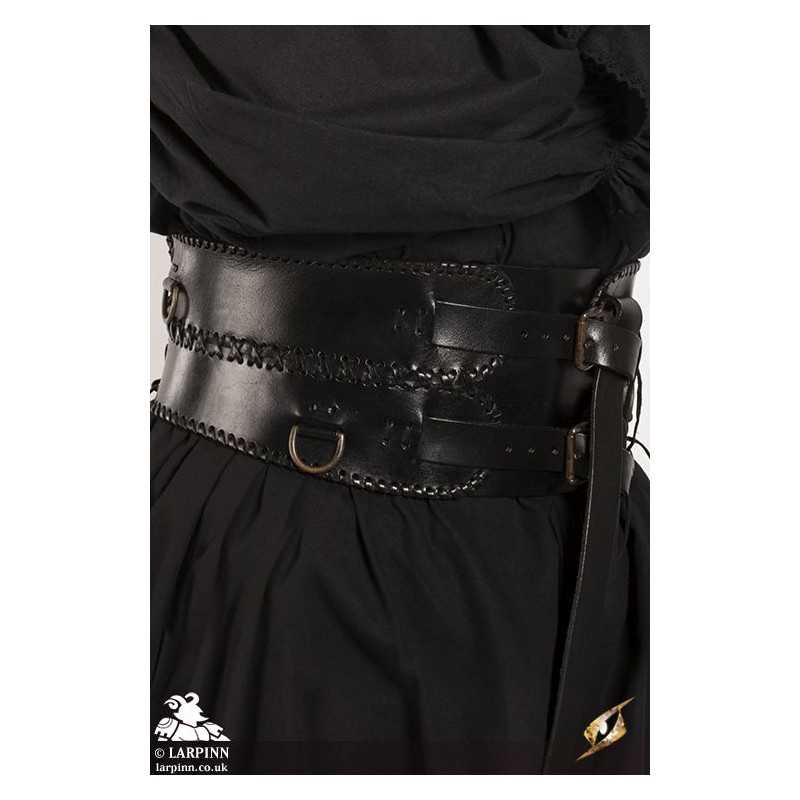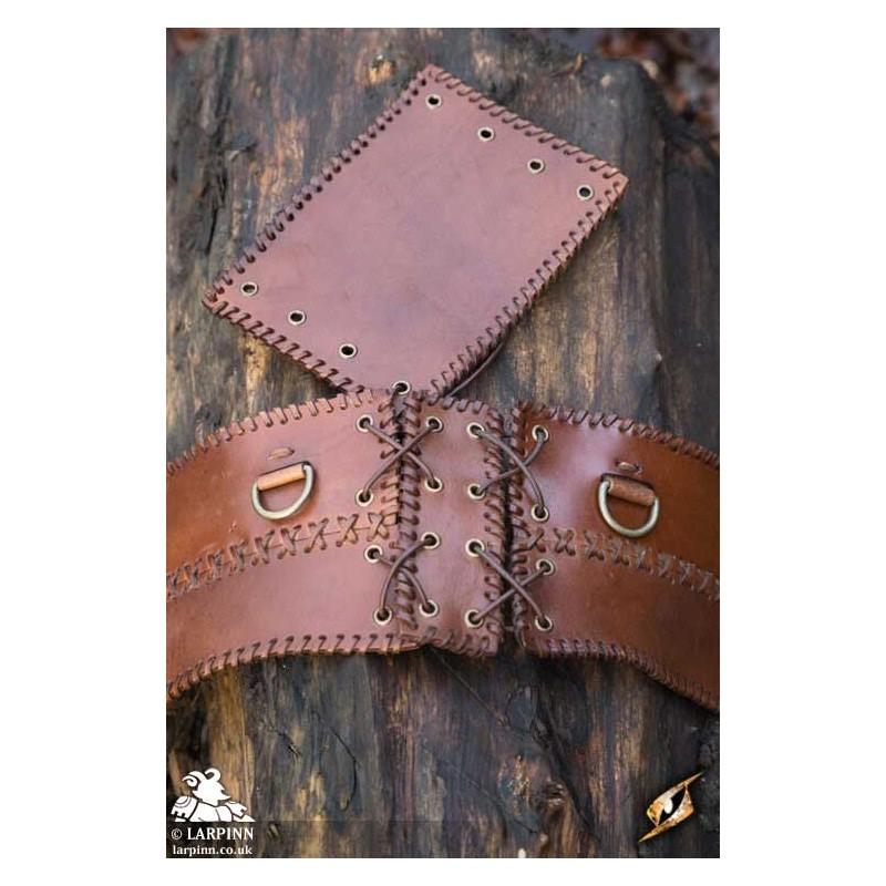 This bestselling Epic Armoury Broad Belt is a hefty leather belt fitted with D-rings for attaching additional equipment. The belt is made from two connected parallel leather pieces and adjustable braces at the front and back. The belt’s rim is stitched with a leather cord, adding rural detailing that gives life to your costume. Fasten the belt by securing its two 70 cm long belt tongues over a heavy leather plate on the front, locked in place by two rounded, brass belt buckles. Two spacers are included with each belt to give an extra option for customization and perfect fit. The spacers can be used alone or in combination.