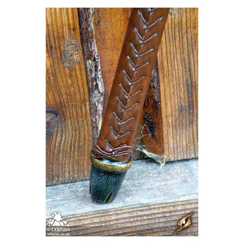 Epic Armoury’s Chaos Axe is a deadly and menacing 110 cm two-handed axe designed for the brutal and barbaric maurauder. It has a 32 cm long axe-blade with detailing that makes it look battered, used and brutal, an execellent companion piece for your less than merry fighter or blood thirsty barbarian at your next LARP. The head is hand painted to look like real metal embellished with gold, and nicks in the steel to emphasize the used aesthetic, and it is made of safe, soft foam. The bladed head attaches to the shaft which is hand painted. The 37 cm grip at the end of the Chaos Axe is wrapped in suede leather for appearance and comfort.