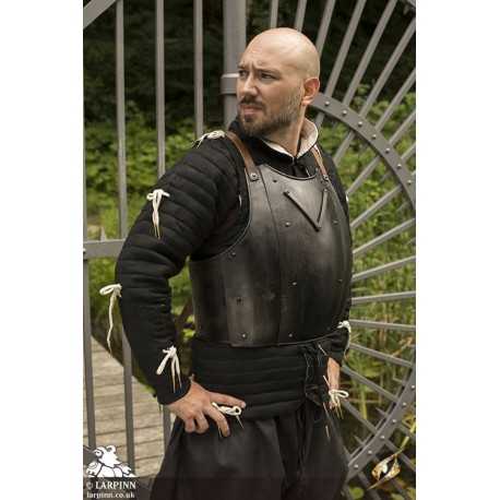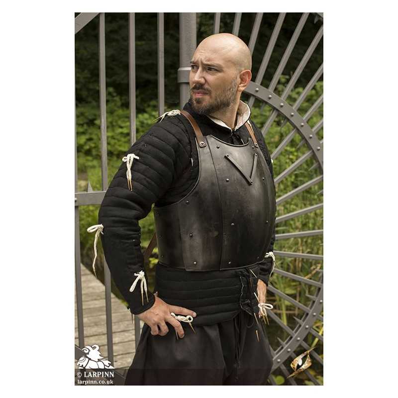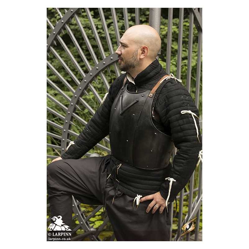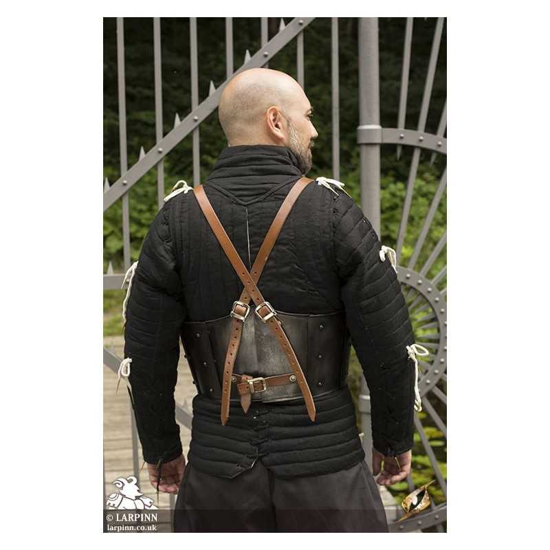 The Churburg Armour is embellished with a wide ‘V’ on the front to deflect attacks away from the head. It is fully usable with Epic Armoury’s other metal work products, giving you the freedom to customize your character’s costume. Made of 1 mm thick mild steel and top-grain leather straps and fittings, this armour piece is built to withstand the abuse of a LARP or reenactment with regular leather and metal armour care.