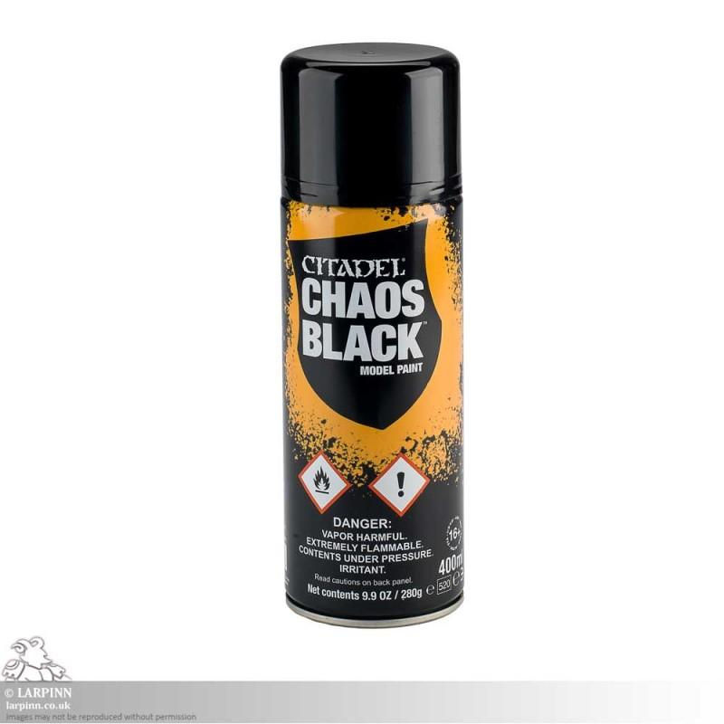 Chaos Black Spray is designed for basecoating plastic, resin and metal Citadel miniatures. Reformulated for maximum results, with a fantastic black colour, it's a fast way to get a uniform base of colour onto models.