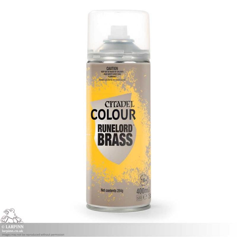 Runelord Brass Spray is designed for basecoating plastic, resin and metal Citadel miniatures. Reformulated for maximum results, with a fantastic black colour, it's a fast way to get a uniform base of colour onto models.