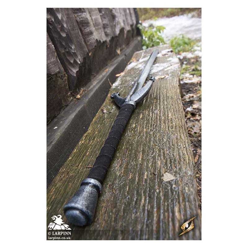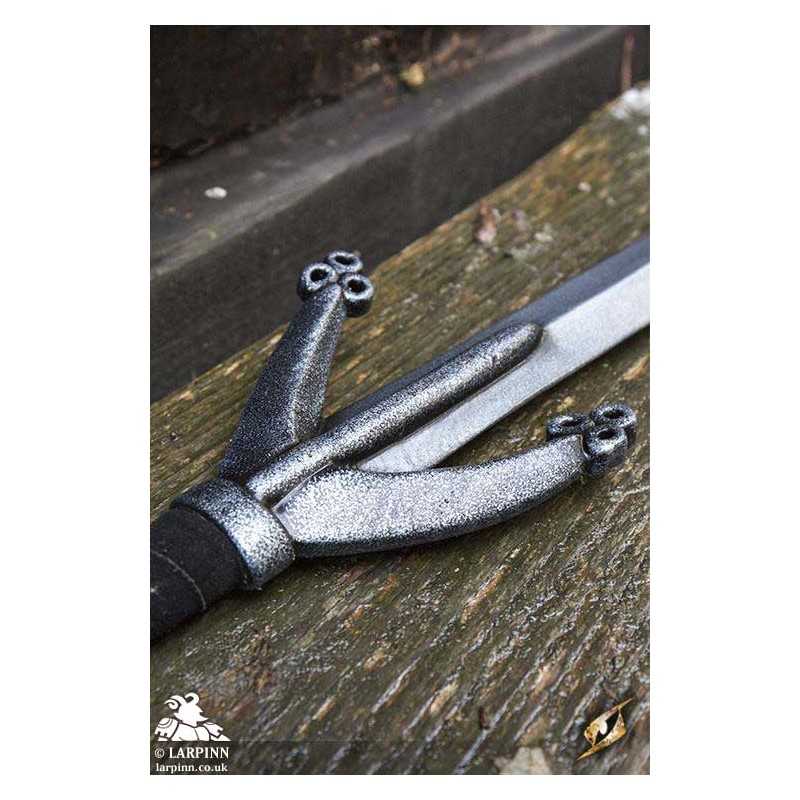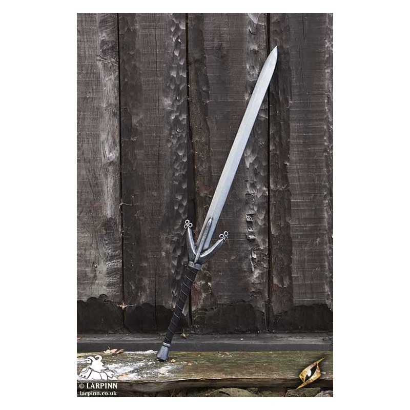 Epic Armoury's Claymore is an impressive 140 cm two-handed sword with great parrying qualities and a lot of personality. The 90 cm double-edged blade attaches to a large v-shaped crossguard, designed to lock an enemy’s blade and to protect your hands. The 32 cm ergonomic handle is wrapped in split-leather and can be used two-handed or one-handed in close quarters. At the end is a coreless pommel that matches the crossguard.