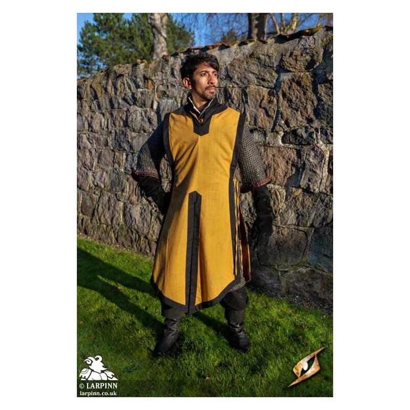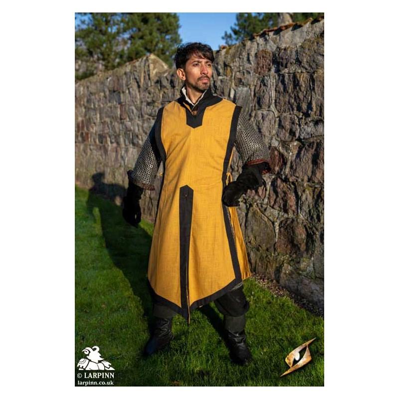 Knights of old will adore wearing Epic Armoury’s Clement Tabard. This sleeveless jerkin is designed to be worn as an outer dress over your medieval costume or armour and is made from roughly woven cotton. Our sleevless coat is made from white knitted cotton embellished by a beige trim. Our rugged-looking medieval tabard is quickly secured at the waist by cotton ties so you may quickly enter battle and defend your territory. Use it to display your heraldry, guild affiliation or to help boast your deeds and protect your uniform as you Larp.