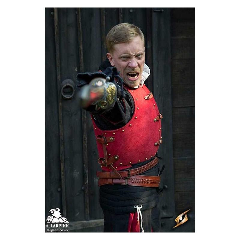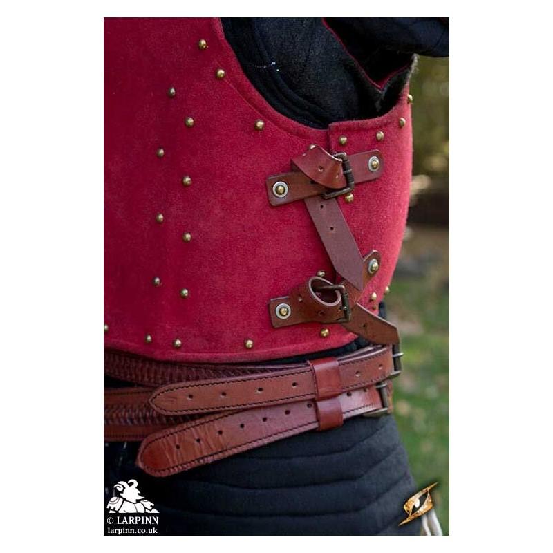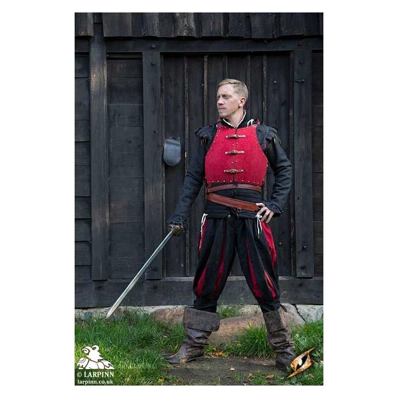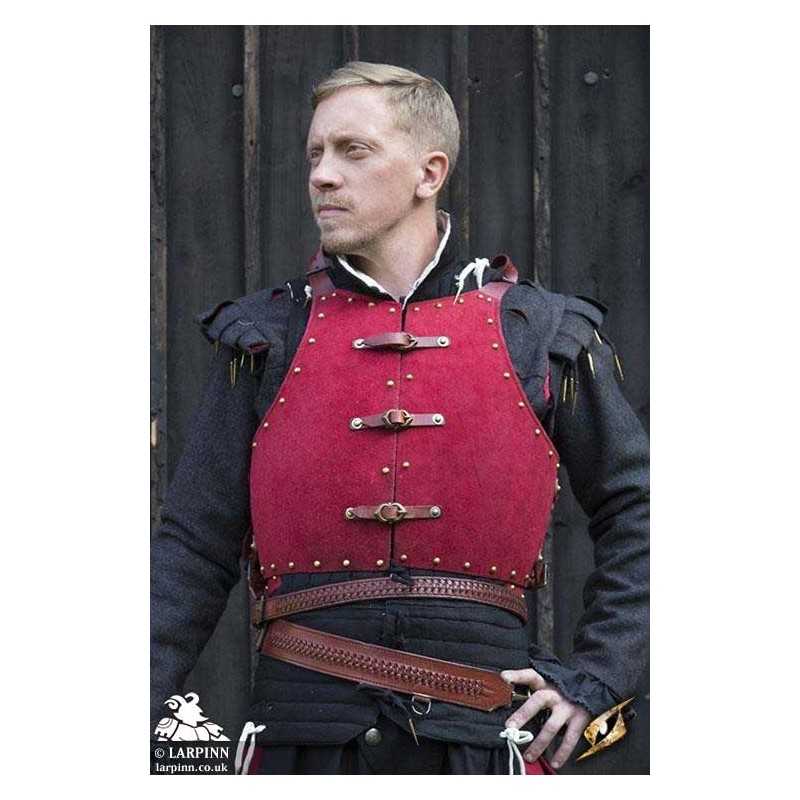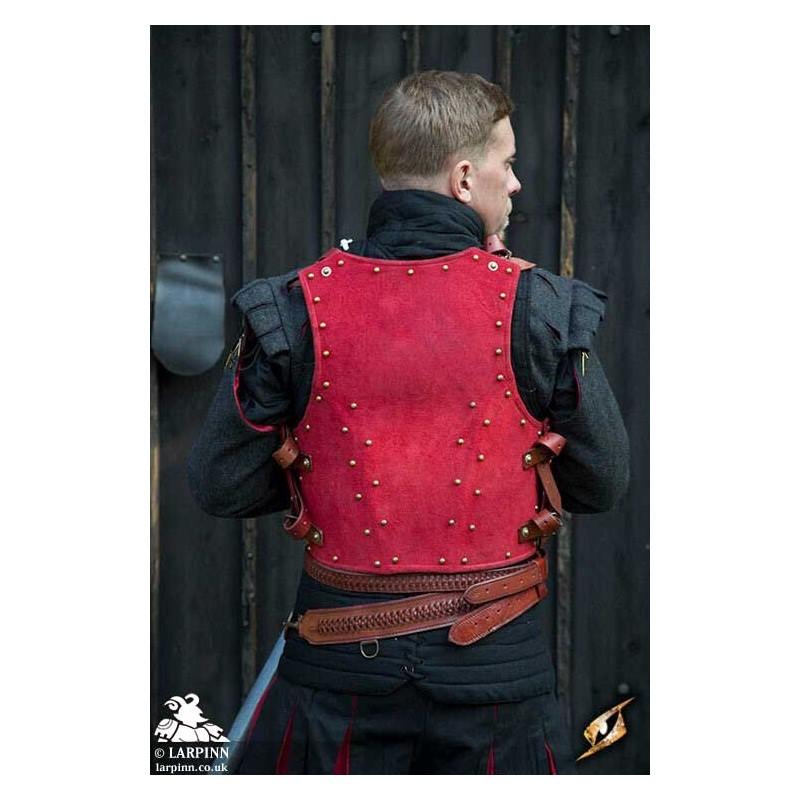 Epic Armoury’s Red Corrazina is a beautiful low-fantasy piece of armour protecting the front and back of the torso and abdomen. The plate rests at the waist and is sculpted to fit the body and add structural strength to the steel. This steel riveted piece has been covered with a luxurious and soft layer of red suede leather, giving it a particularly rich appearance.