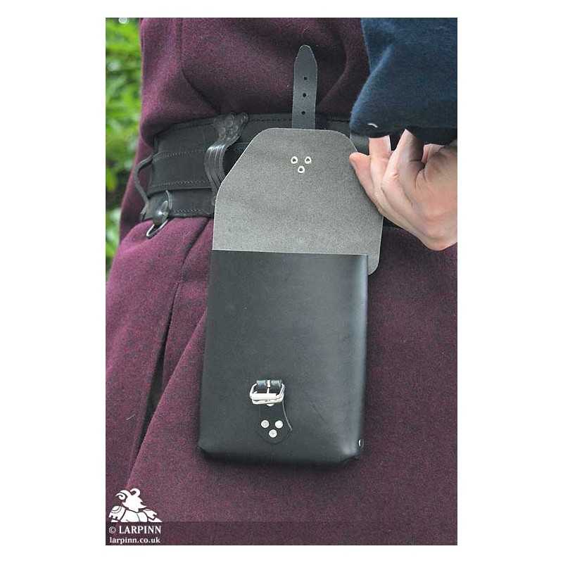 The Corym A6 Leather Pouch is an essential item for the belt of any LARPer - new or old! This pouch is handmade from real, high-quality leather here at Larp Inn and is designed to easily hold an A6 book with space for extras. Of course, the contents are not limited to books, and this bag is perfect for holding all your in-character or out-of-character items securely, whilst you roll around on the ground.
