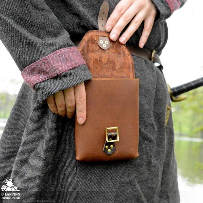The Corym A6 Leather Pouch is an essential item for the belt of any LARPer - new or old! This pouch is handmade from real, high-quality leather here at Larp Inn and is designed to easily hold an A6 book with space for extras. Of course, the contents are not limited to books, and this bag is perfect for holding all your in-character or out-of-character items securely, whilst you roll around on the ground.