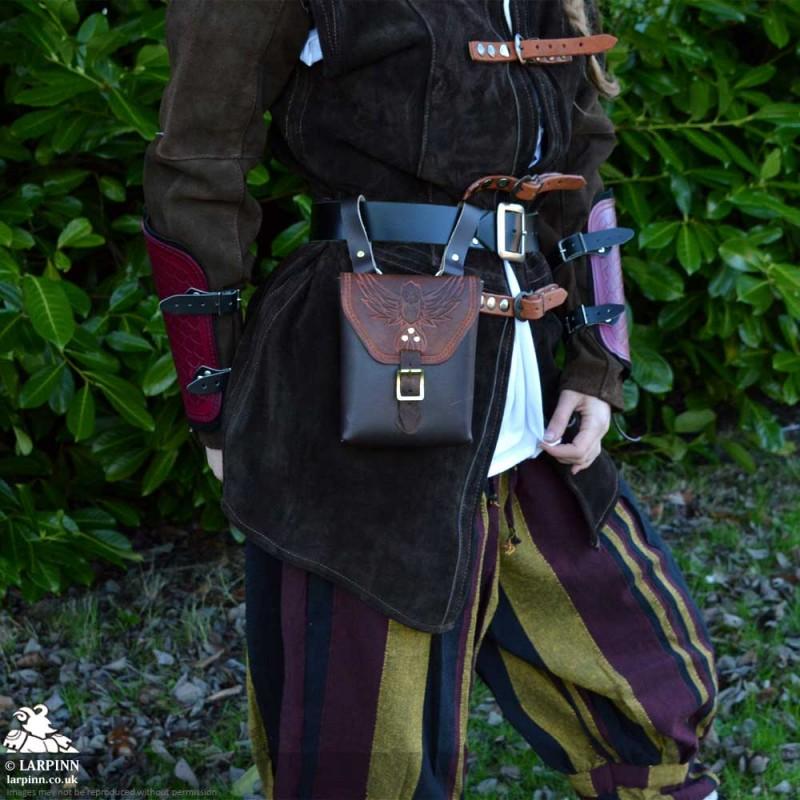 The Corym A6 Leather Pouch is an essential item for the belt of any LARPer - new or old! This pouch is handmade from real, high-quality leather here at Larp Inn and is designed to easily hold an A6 book with space for extras. Of course, the contents are not limited to books, and this bag is perfect for holding all your in-character or out-of-character items securely, whilst you roll around on the ground.