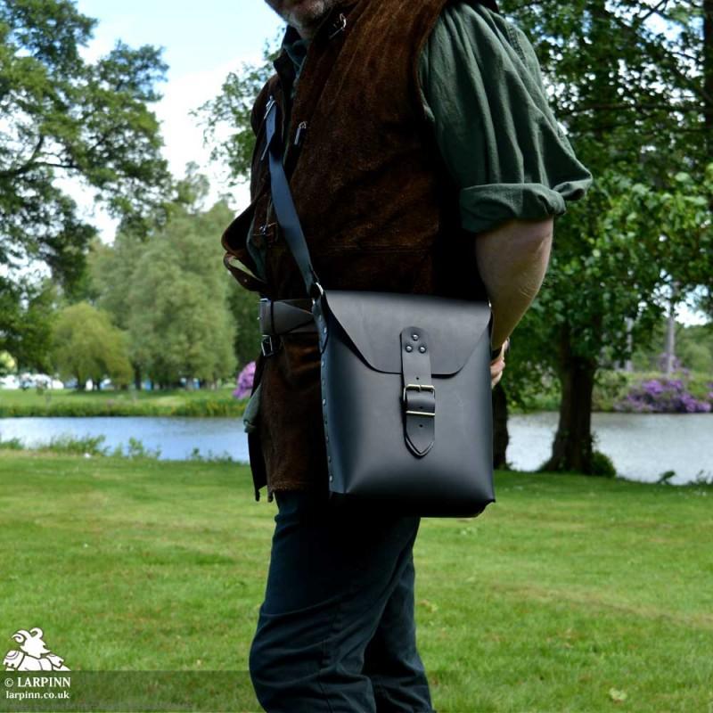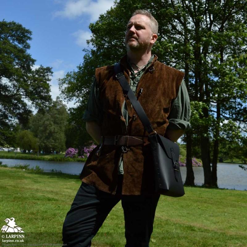 The Corym Leather Shoulder Bag is a useful satchel designed for carrying around all your characters essentials. Our Corym range are all hand made here at Larp Inn out of real, high-quality leather and combine convenience with fantasy aesthetic. The Corym Leather Shoulder Bag is especially useful for characters like mages, clerics, apothecaries and other LARP costumes where you need to have lots of accessories on hand during the game.