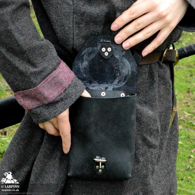 The Corym A6 Leather Pouch is an essential item for the belt of any LARPer - new or old! This pouch is handmade from real, high-quality leather here at Larp Inn and is designed to easily hold an A6 book with space for extras. Of course, the contents are not limited to books, and this bag is perfect for holding all your in-character or out-of-character items securely, whilst you roll around on the ground.
