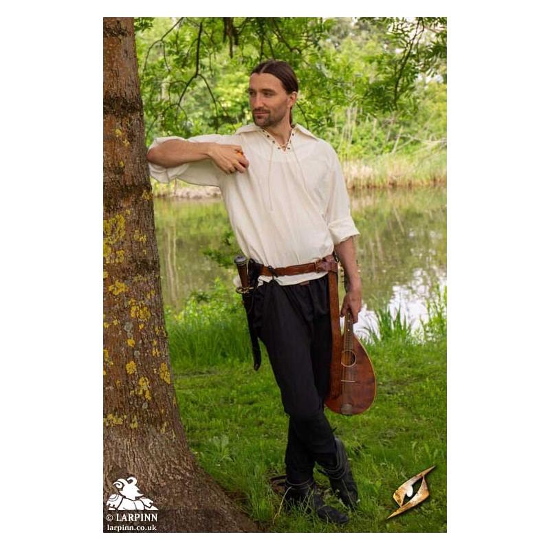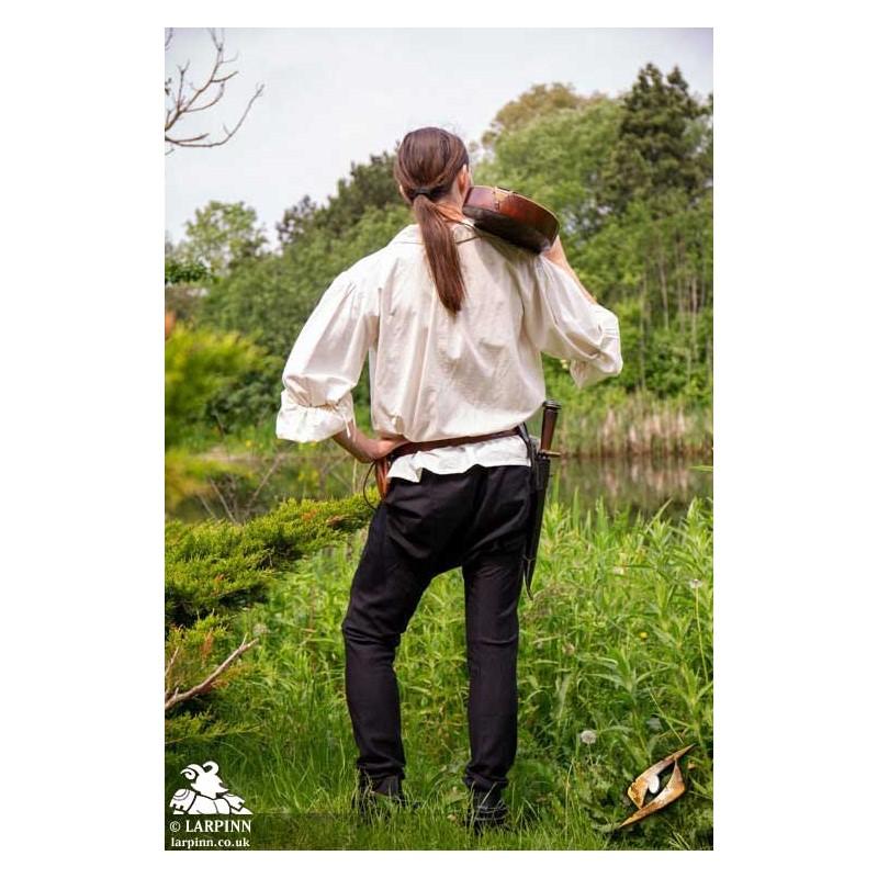 The Emperor Red Single Cotton Hose from Epic Armoury is a typical example of medieval fashion worn throughout the middle ages and renaissance period. This rough cotton hose is sold by the unit so you may personalize the look of your Larp character by mixing colors. Whether you play a peasant or squire, the hose should be a staple in your period wardrobe. Cotton hosen are both comfortable, and practical to wear during hot summer months and can be worn with braies for a typical historical look. This legging has a drawstring and can be attached to braies or a belt (sold separately), and is made to withstand the rigours of battle.