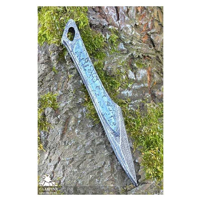Epic Armoury's new Cutthroat Knife is an elegant 10 cm blade and sculpted 8 cm handle perfect for rogues and creative nobles alike. Featuring more detailing than previous throwing knives, the Cutthroat Knife appears more realistic thanks to the iron texture and marble colouring. Easily hang your knife from your belt using the loop on its pommel, showing off your weapon while keeping it secure. With its low-fantasy style, match this throwing knife with most Epic Armoury products and characters. Use it as a weapon or surgery tool--whatever fits your needs!