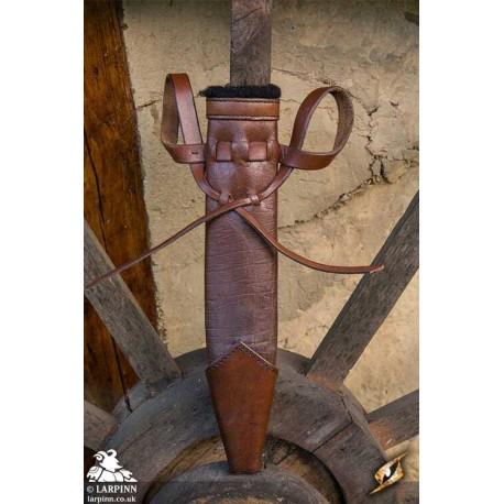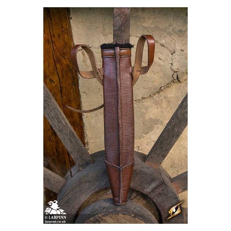 Epic Armoury’s Full Scabbard Dagger is a leather scabbard designed to protect your weapon from the elements, while keeping it conveniently close. This 33 cm scabbard will accommodate a weapon up to 7 cm wide. Soft polyester-wool padding has been added to the inside to protect your weapon, while also making it easy to withdraw.