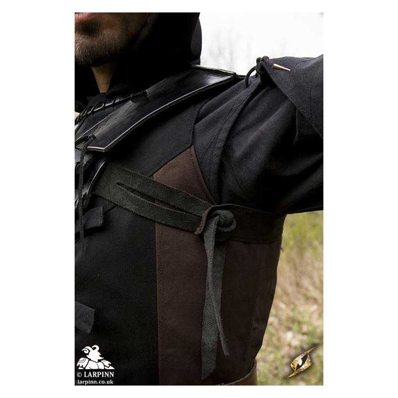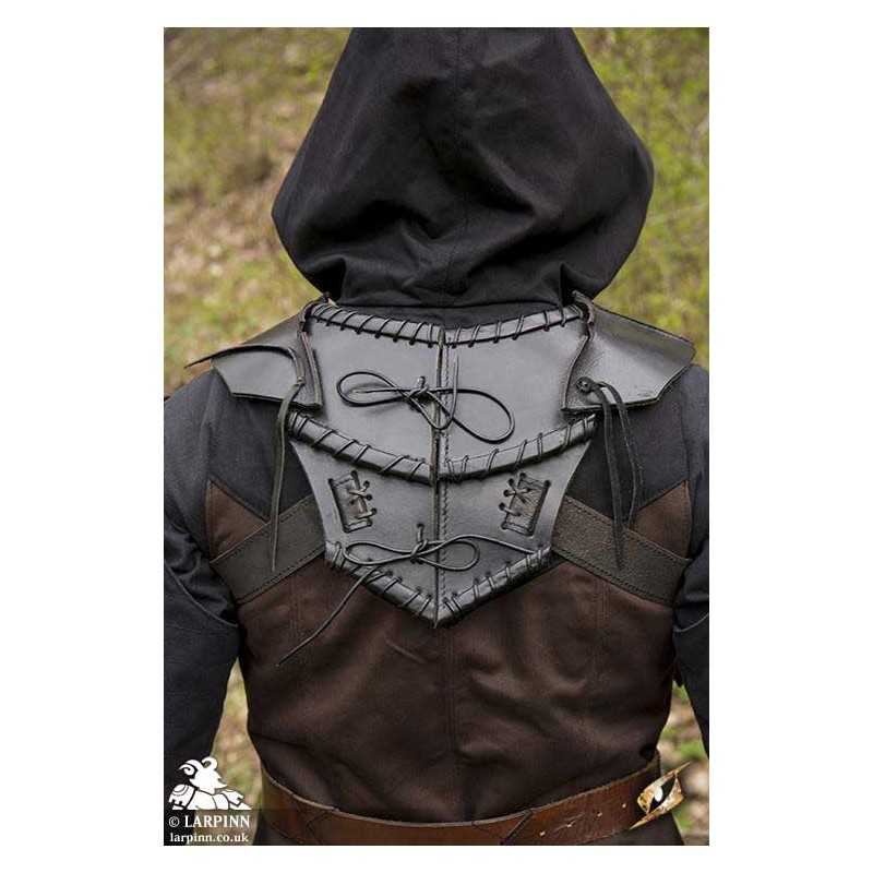 Secure the Dark Elf Gorget around your neck by sliding your head through the neck hole--the back will open to allow you to do this--and tightening the leather straps around the ribcage. Fearsome to behold and designed to appear sharp and deadly, use this armour with an assortment of secretive and dangerous characters. Wear it on its own or pair it with Epic Armoury’s matching Dark Elf armours.