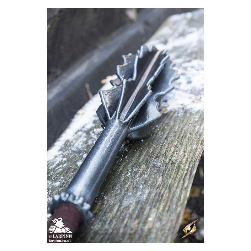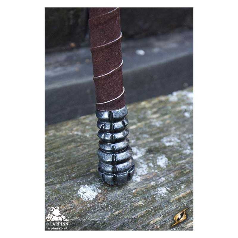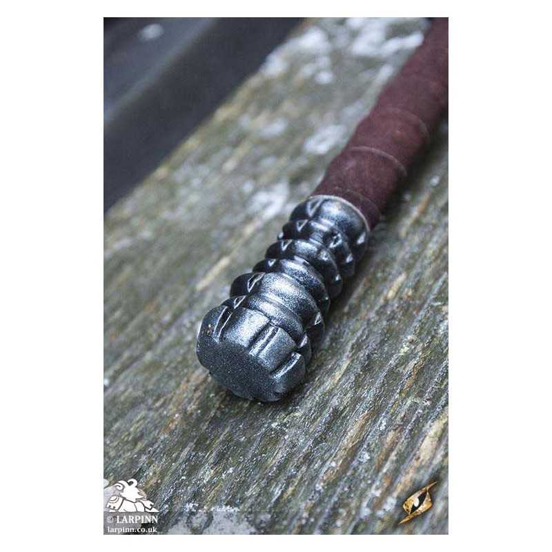 Epic Armoury’s Demon Slayer is a solid latex mace for the vigilant fighter ridding the world of unnatural dangers. The mace has eight narrow and jagged flanges, each about 32 cm long. Handpainted detailing gives the mace-head and haft a realistic matte steel finish. The 16 cm handle is wrapped in split-leather for a solid grip, connected to a sculpted pummel to match the head.