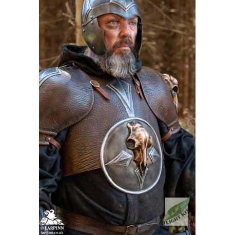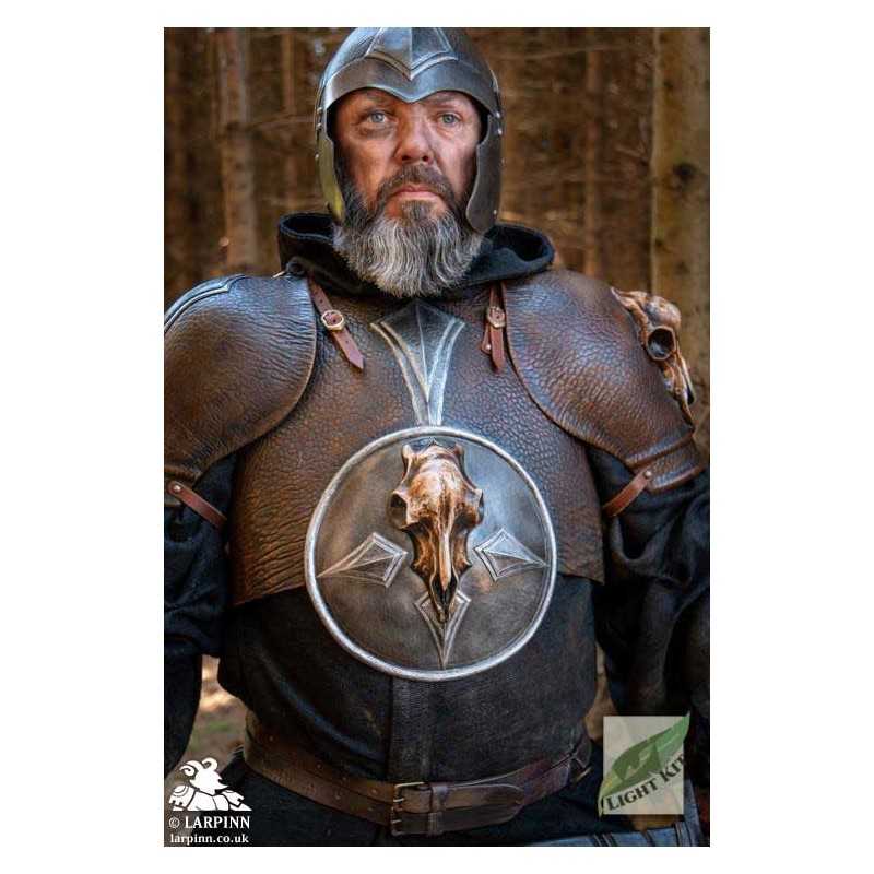 To the eye, our range of polyurethane armours are near indistinguishable from their metallic counterparts. They are however much more comfortable to wear and can be worn for long periods of time without discomfort. Indeed, the flexible nature of this armour means that it can bend to the contours of your body in a way that rigid steel will not. Each part is typically a quarter of the weight of their steel equivalent, allowing for faster movement with less fatigue. Each piece is hand painted with a durable acrylic finish and is detailed to look as realistic as possible. The maintenance free finish will not rust like steel does and can be worn in all weathers. Adjustable leather straps and the flexible nature of the armour allow it to be comfortably worn by all but the largest of people.