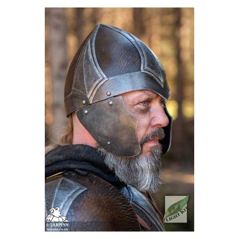 To the eye, our range of polyurethane armours are near indistinguishable from their metallic counterparts. They are however much more comfortable to wear and can be worn for long periods of time without discomfort. Indeed, the flexible nature of this armour means that it can bend to the contours of your body in a way that rigid steel will not. Each part is typically a quarter of the weight of their steel equivalent, allowing for faster movement with less fatigue. Each piece is hand painted with a durable acrylic finish and is detailed to look as realistic as possible. The maintenance free finish will not rust like steel does and can be worn in all weathers. Adjustable leather straps and the flexible nature of the armour allow it to be comfortably worn by all but the largest of people.