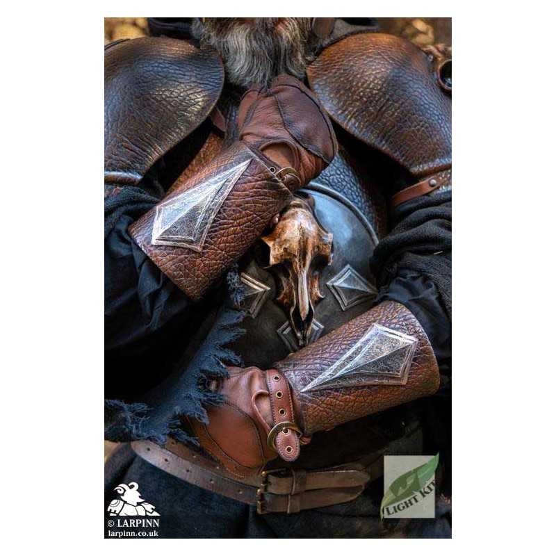 To the eye, our range of polyurethane armours are near indistinguishable from their metallic counterparts. They are however much more comfortable to wear and can be worn for long periods of time without discomfort. Indeed, the flexible nature of this armour means that it can bend to the contours of your body in a way that rigid steel will not. Each part is typically a quarter of the weight of their steel equivalent, allowing for faster movement with less fatigue. Each piece is hand painted with a durable acrylic finish and is detailed to look as realistic as possible. The maintenance free finish will not rust like steel does and can be worn in all weathers. Adjustable leather straps and the flexible nature of the armour allow it to be comfortably worn by all but the largest of people.