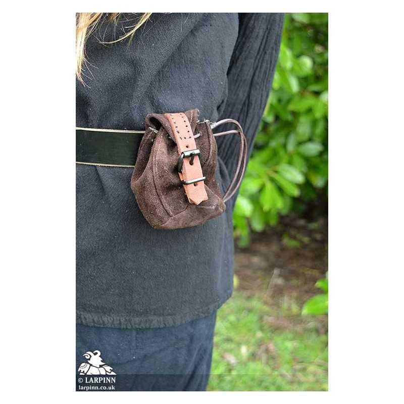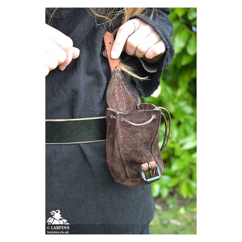 The Duke collection of pouches are durable suede-leather pouches designed to hold a range of knick-knacks on your belt. These bags are fastened with a leather strap to keep your belongings safe and secure. The Drawstring Coin Purse adds additional security by first sealing with a drawstring and then fixes closed with the leather strap - ideal for coins and gems.