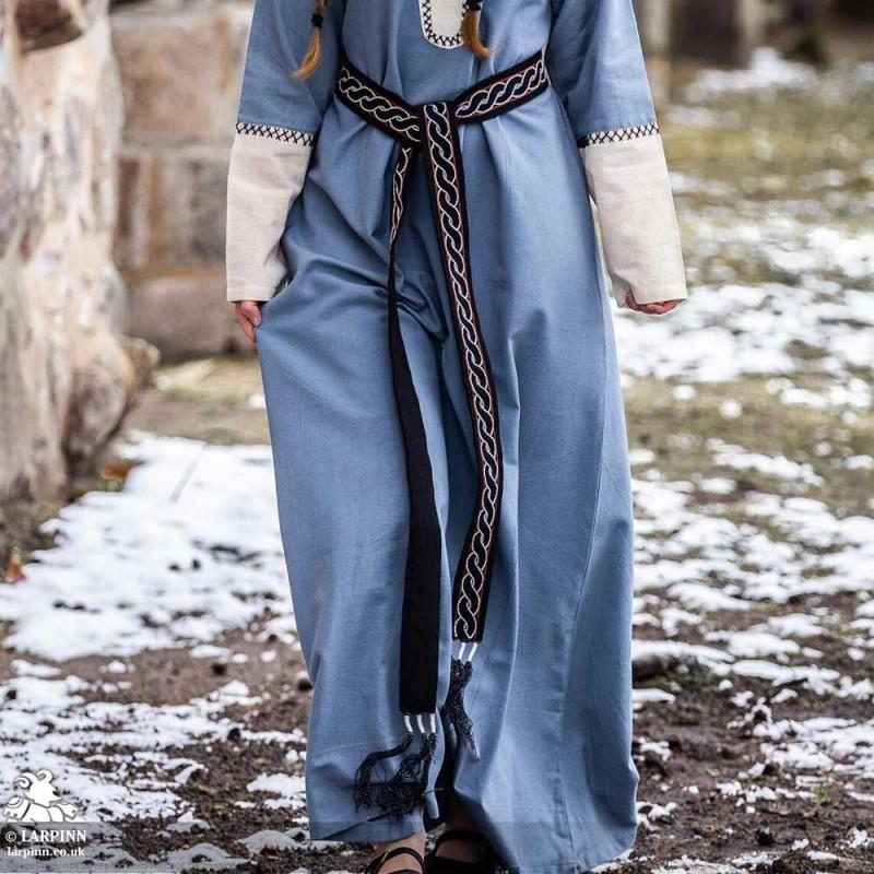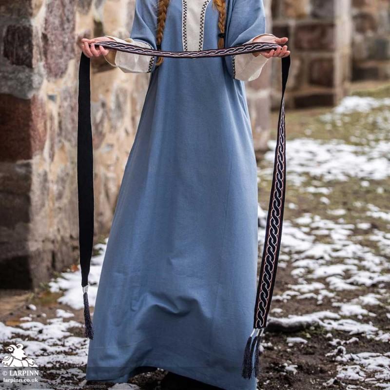 Step into a world where legends are born and tales of bravery echo through the ages with our Elina Viking Belt. Measuring 5 cm in width and approximately 235 cm in length, this belt beautifully combines functionality with a nod to history-inspired design. The intricate interwoven pattern of two parallel, wavy lines creates a stunning braided effect that captures the essence of Viking artistry. With its fringed tassels, this piece is designed to wrap around the waist, making it a versatile accessory for any modern-day adventurer.