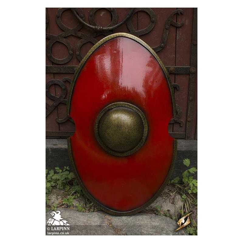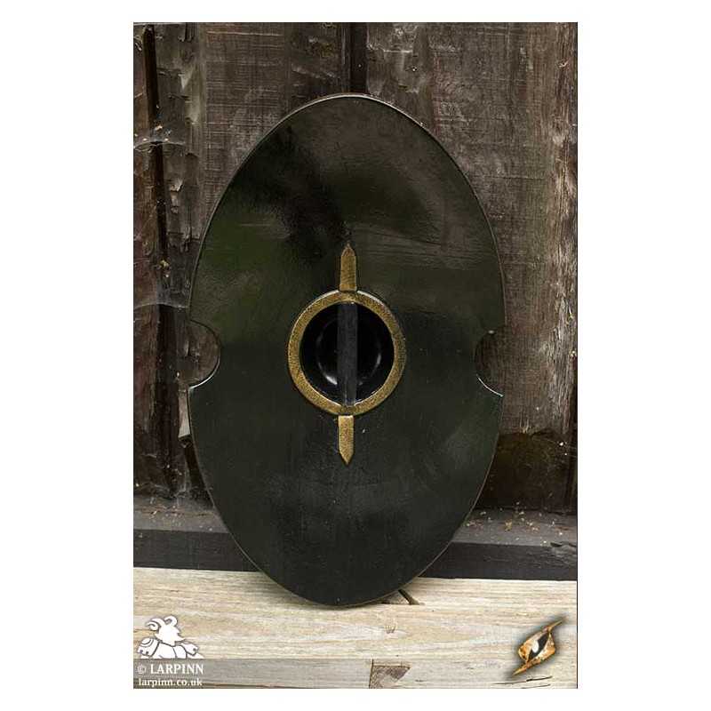 Epic Armoury’s Elliptical Shield is an oval latex shield inspired by Ancient Roman soldiers. Finished with a black body and tarnished brass rim and shield boss, this shield is sure to impress your fellow warriors on the battlefield.