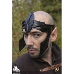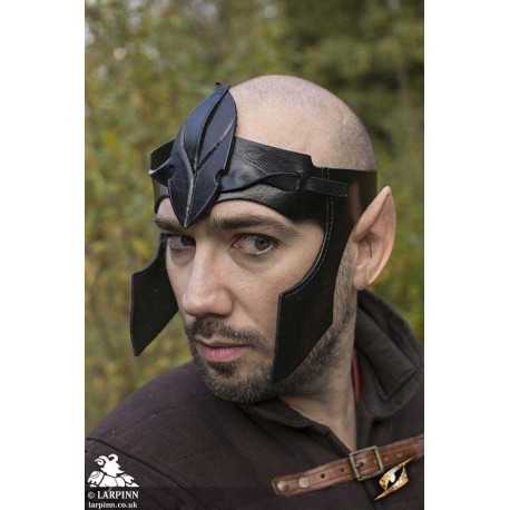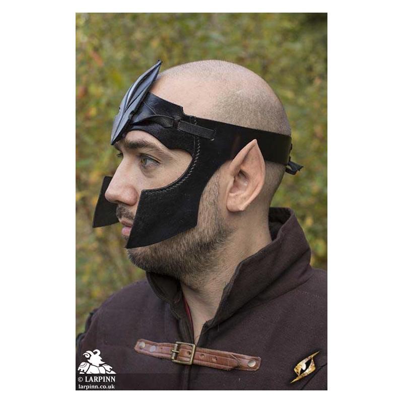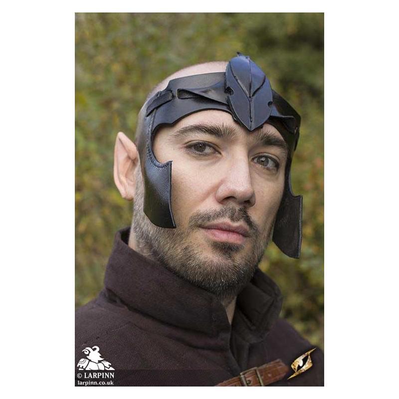 This bestselling Epic Armoury Elven Head Band is a slim decorative piece of head armour with a distinct elven feel. The headband is made from vegetable-tanned leather and fitted with an adjustable leather brace at the back. At the forehead, the headband is decorated with a flat leaf-shaped leather patch that rises over the forehead and stretches down to cover the bridge of the nose. At the temples it is fitted with cheek-pads closely covering the cheek and chin-bones, hovering a few centimetres before the mouth.