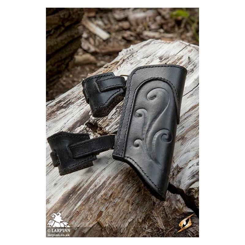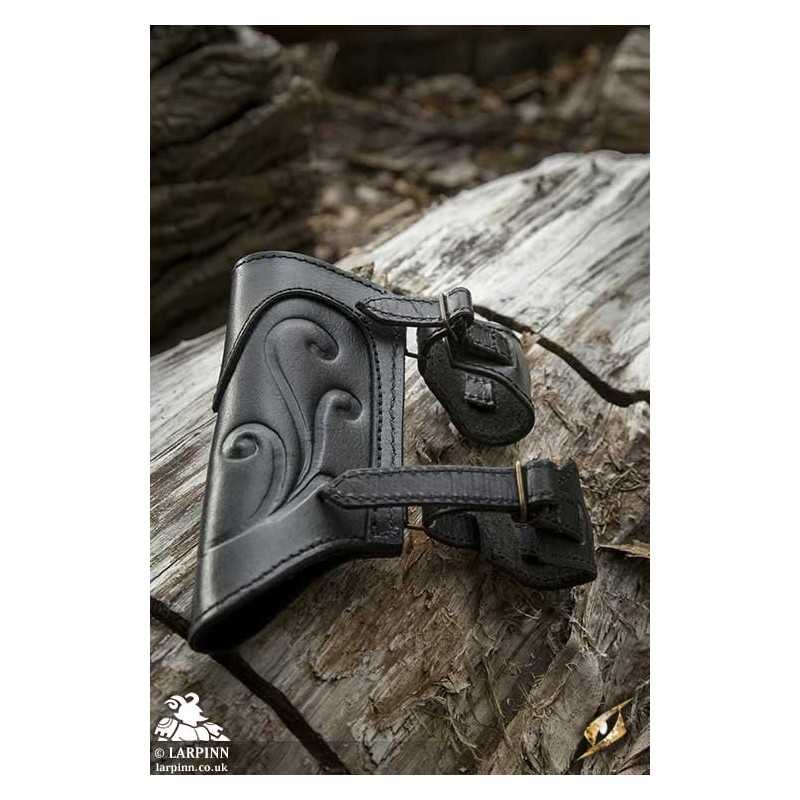 Epic Armoury’s Elven Sword Holder is a beautifully crafted leather frog designed to keep your weapon conveniently close. This frog is open at both ends, and features beautiful vine embossing and a soft inner lining to prevent scratches on your elven sword or dagger.
