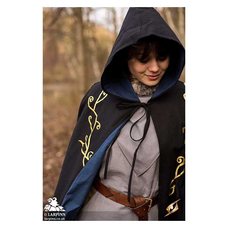Epic Armoury’s Cape Embroidered Cape/Cloak is a beautifully adorned long cape with a hood. Designed to provide significant cover thanks to the rounded shoulders, this cape offers protection from the elements from head to the mid-calf. Made from heavy cotton twill to keep you warm, the inside is lined with soft cotton to add comfort and weight for cold days. Elvish embroidery embellishes this cape, adding great detail to an already high quality product.