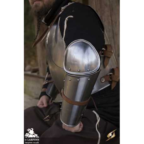 Epic Armoury’s Enclosed Arm Protection is an essential for any person wanting to protect the arms while on a chaotic battlefield. This pair of vambraces features flexible elbow couters and vambraces attached to comfortable leather that enclose and protect the entire forearm. Rolled edges and small ridges around the rim further protect the elbow, making it less likely that you would take a lucky strike from an enemy.