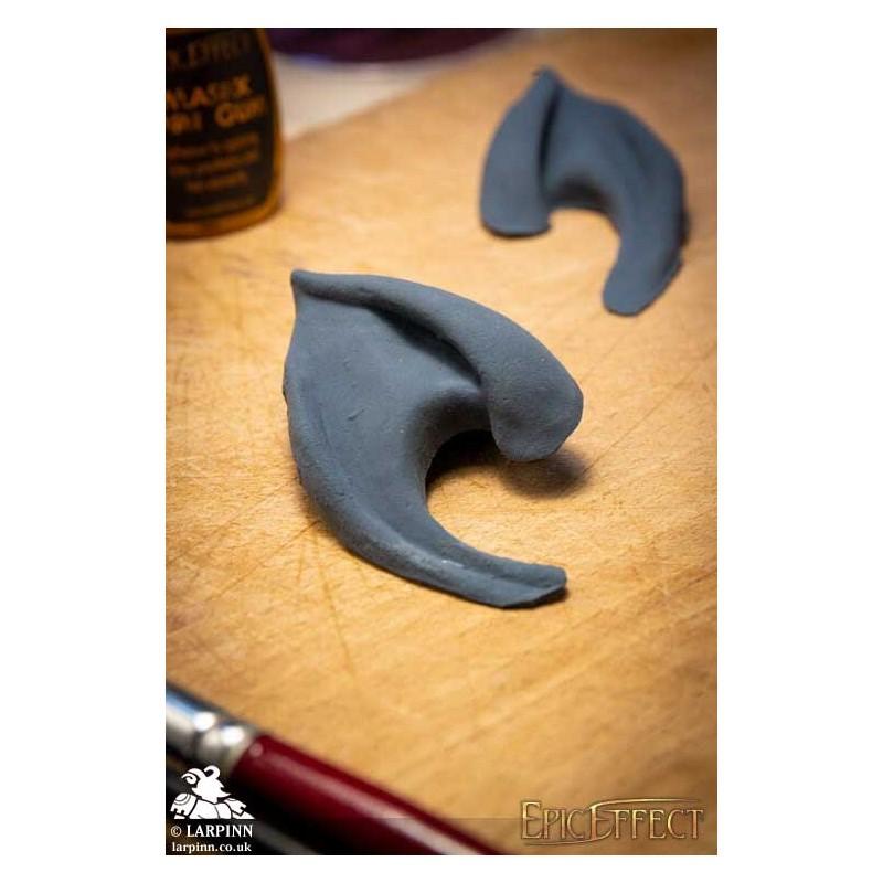 Epic Armoury’s Dark Elf Ears are a set of latex-prosthetic ears molded in a pointed shape, a common sigil of the mythological elf. Round points sweep back along the head, helping this particular pair of elf ears to stand apart from the more classic elven shape. The prosthetic adds 5 cm to the helix of the human ear, and are as smooth and curved as a dark elven ear should be. The ears are modelled to cover and form-fit over the outer ear, allowing for plenty of surface area in which to securely and safely glue the latex to the wearer’s skin.
