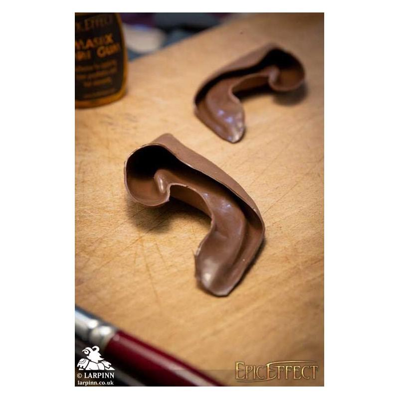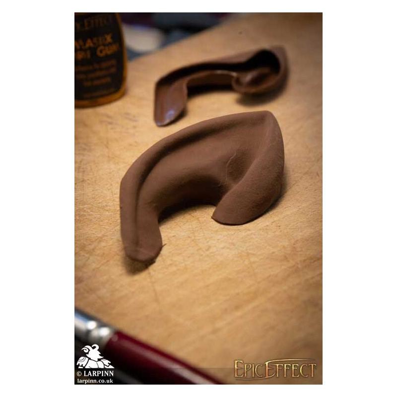 These Elven Ears are prosthetic ears molded in a classic pointed shape, a common sigil of the mythological elf. These latex ears add 4 cm to the human ear at the helix, and are as smooth and elegant as an elven ear should be. The ears are modelled to cover and form-fit over the outer ear, allowing for plenty of surface area in which to securely and safely glue the latex to the wearer’s skin. Application of this prosthetic is easy using Epic Effect Prosthetic Power Glue, Mastix Spirit Gum or other prosthetic adhesive.