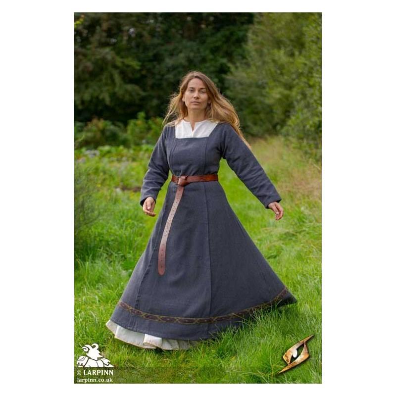 The Estrid Dress is inspired by the stalwart folk of the northern shores. It is made of herringbone-patterned cotton and features a tie string on the back for an adjusted fit and a beautiful woven lining along the dress bottom. Depending on colour and accessory choice, the Estrid Dress is well-suited for many characters, such as northern commoners, shield maidens and clan nobles. Will you be there to pluck the strings of destiny?
