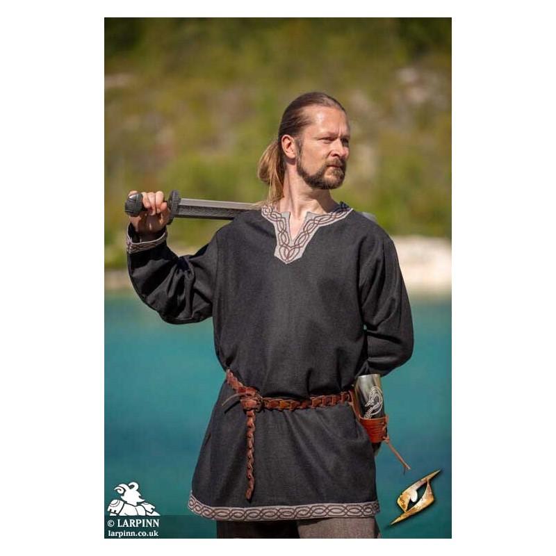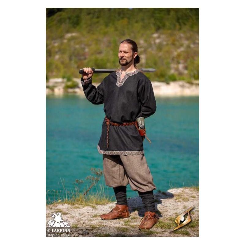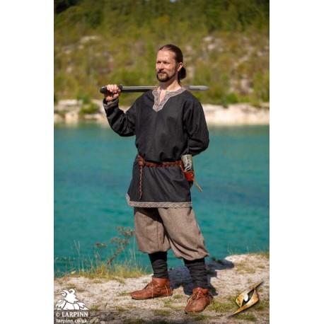 Epic Armoury’s Woodland Tunic is inspired by designs from the Viking Age and made from high-quality herringbone-patterned cotton. As distinct details, the tunic has tapered edges along the split crew neckline and has piping decoration at the cuffs. In addition, the herringbone-pattern on the cuffs is orthogonally aligned to the sleeve pattern. The tunic is well suited for a simple kit but is also an excellent choice as base apparel in combination with other apparel.
