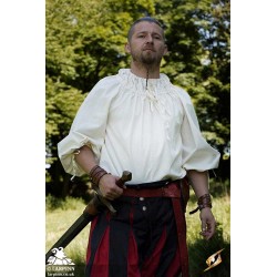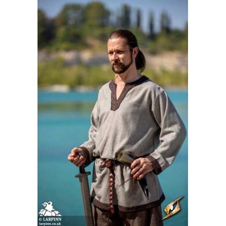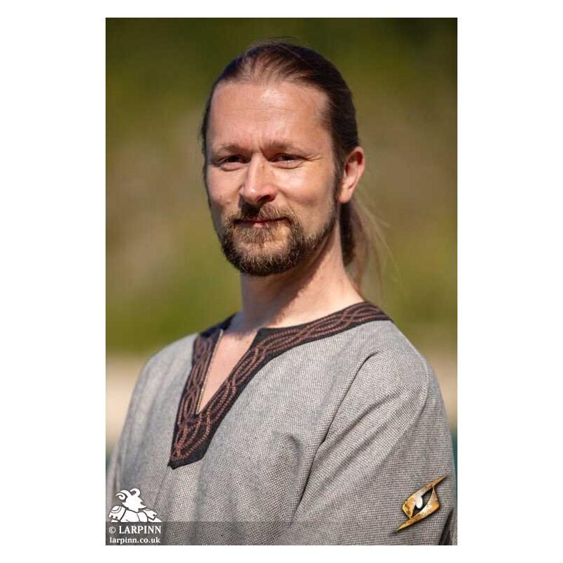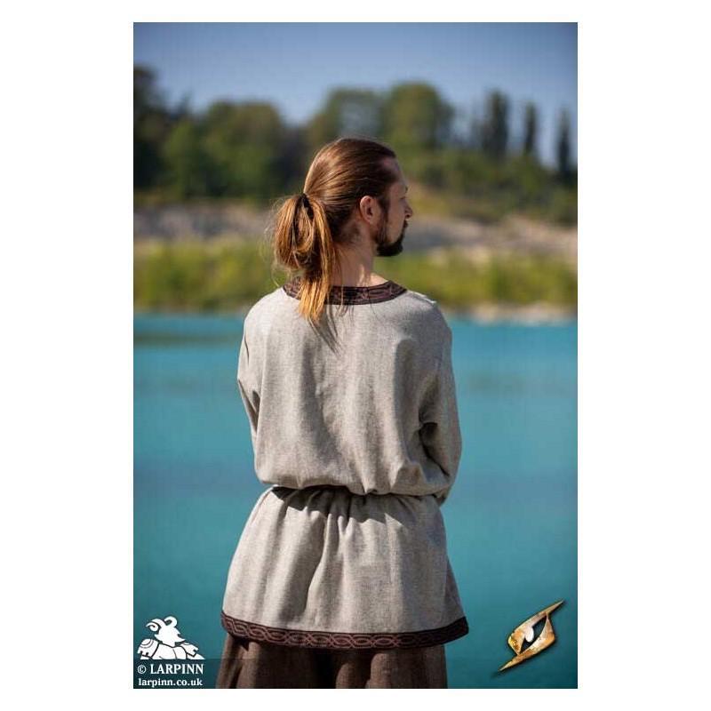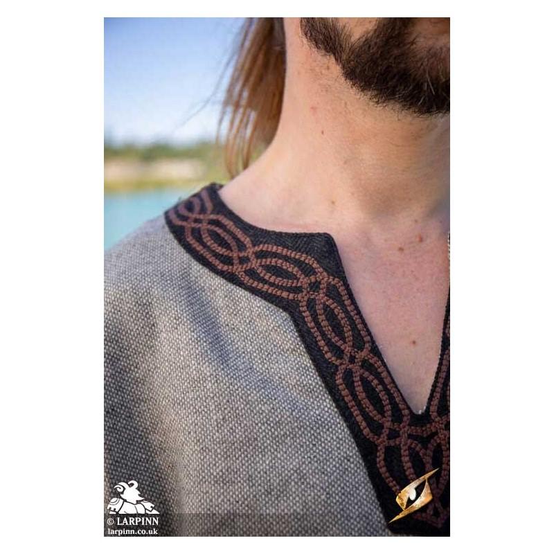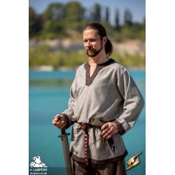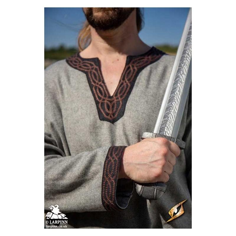 Epic Armoury’s Woodland Tunic is inspired by designs from the Viking Age and made from high-quality herringbone-patterned cotton. As distinct details, the tunic has tapered edges along the split crew neckline and has piping decoration at the cuffs. In addition, the herringbone-pattern on the cuffs is orthogonally aligned to the sleeve pattern. The tunic is well suited for a simple kit but is also an excellent choice as base apparel in combination with other apparel.