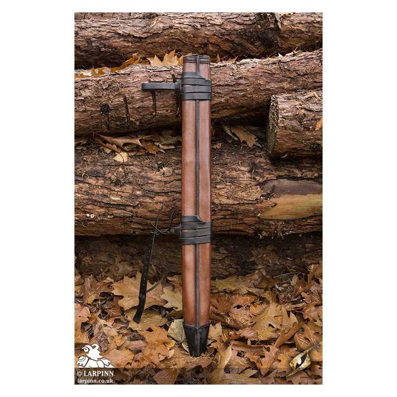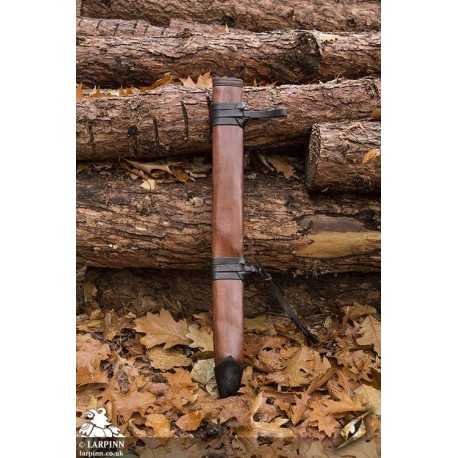 The Full Scabbard is a long leather scabbard designed to protect your weapon from the elements, while keeping it conveniently close. Soft polyester-wool padding has been added to the inside of the hoop to protect your weapon, while also making it easy to withdraw from the scabbard.