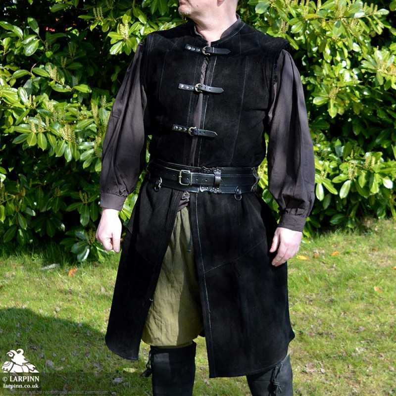 The Garen Leather Vest is perfect for bringing a costume together. The design is flattering and the natural suede leather offers great protection from weather and cold. The black and brown versions are both versatile enough to be worn with a large range LARP, cosplay or stage costumes.