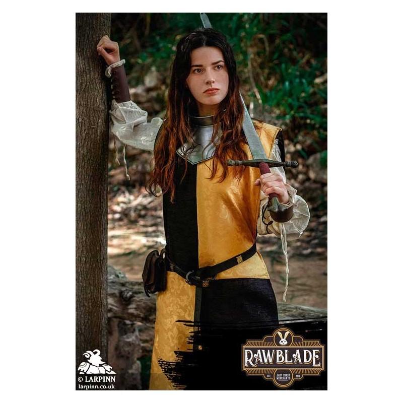 Introducing the Harbinger Tabard, a captivating medieval garment designed for knights and warriors. The Harbinger Tabard is not only a functional garment but also a statement piece. Whether you're participating in LARP, cosplay or theatre, this tabard instantly transforms you into a noble knight, adding an air of chivalry and prestige to your character. With its versatile design and high-quality construction, the Harbinger Tabard can be paired with various armor pieces, chainmail, or other medieval accessories, allowing you to customize your look and create a unique character persona. Unleash your inner knight and immerse yourself in the world of medieval adventures with the Harbinger Tabard. Embrace the allure of damasc pattern fabric and experience the timeless charm of medieval fashion.