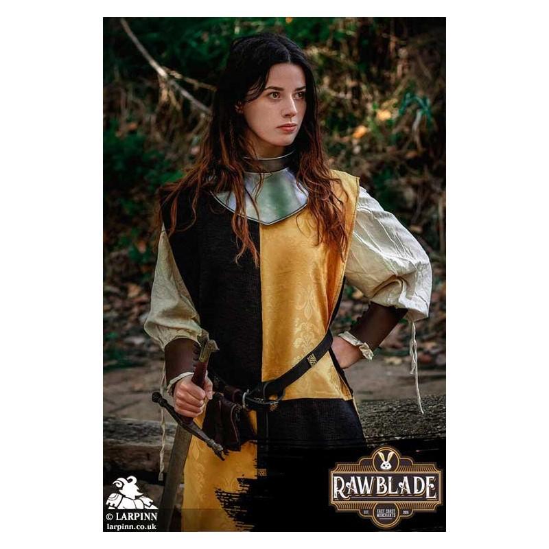 Made from premium cotton fabric and adorned with high-quality damasc pattern fabric, this tabard exudes elegance and authenticity. Crafted with meticulous attention to detail, the Harbinger Tabard features a stunning damasc pattern fabric that adds a touch of regality to your ensemble. The intricate designs and rich colors of the fabric create a visually striking appearance, capturing the essence of medieval aesthetics. Constructed from breathable and durable cotton fabric, this tabard ensures comfort and freedom of movement during intense battles and adventures. Its lightweight nature allows for easy wear and helps to keep you cool during long days at medieval events or Renaissance fairs.